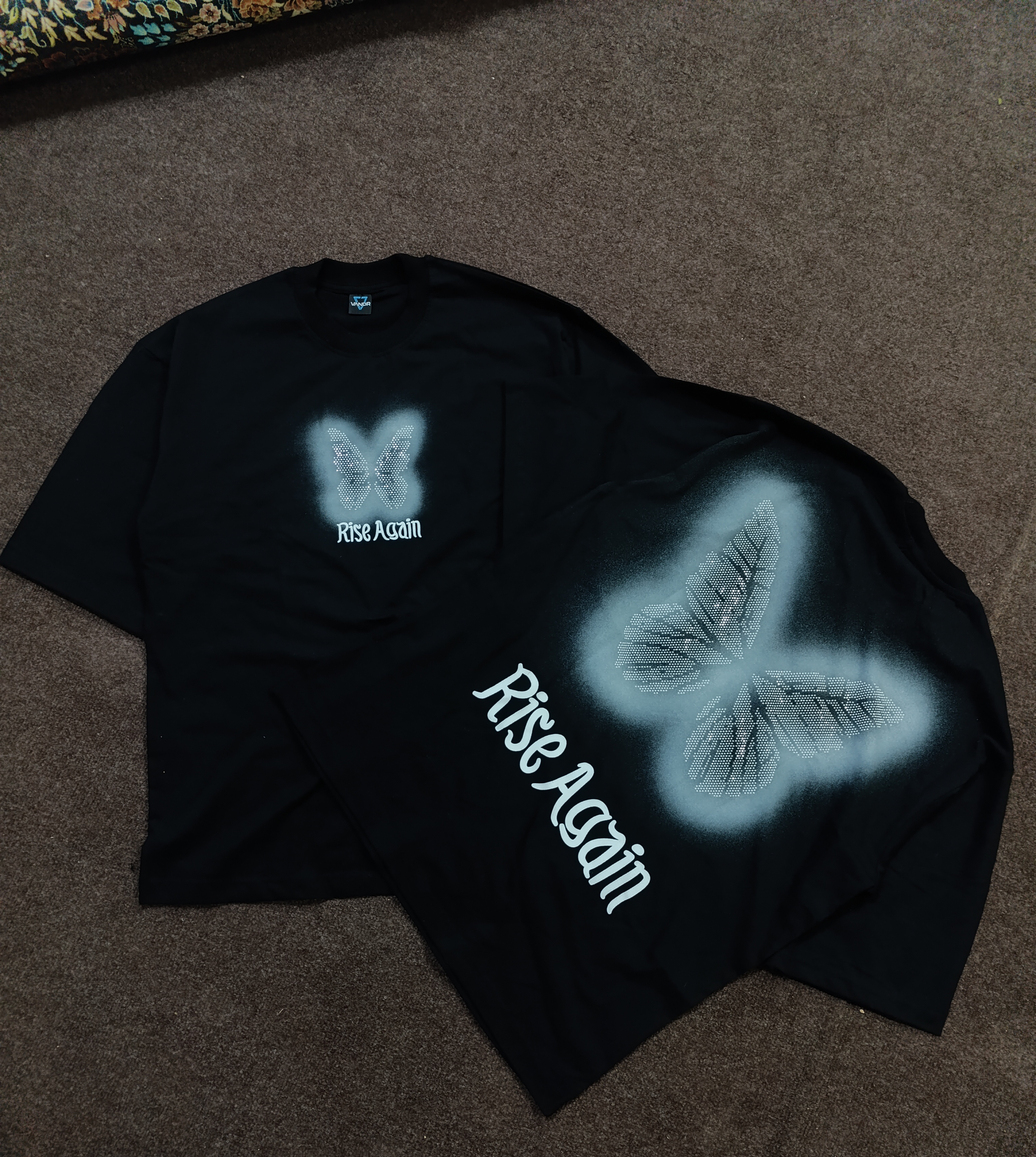 ناموجودتیشرت مردانه سوپر پنبه گرم بالا باکسی نگین کاری مشکی