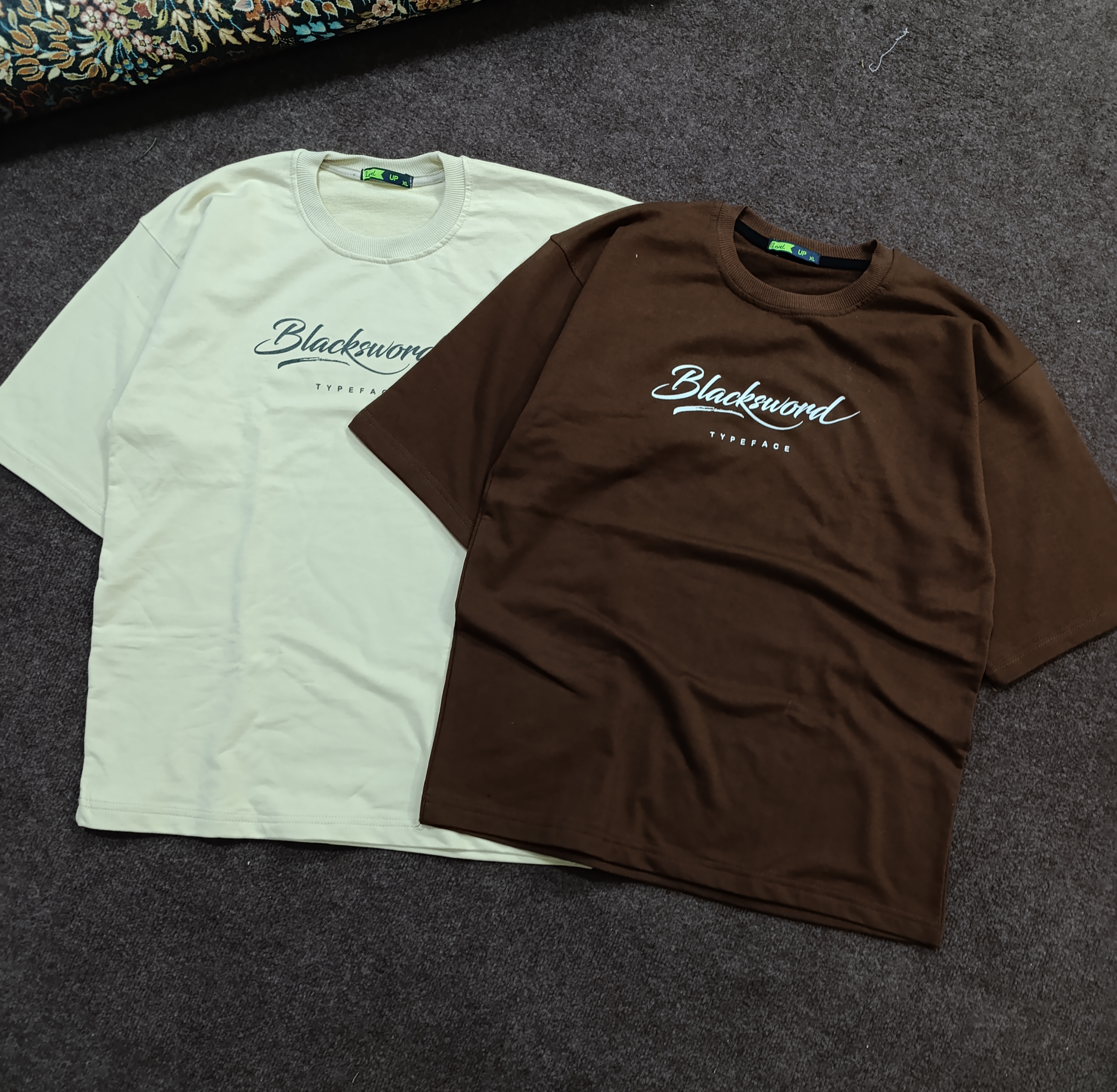 تیشرت ماکان سه نخ قواره باکسی آستین کوتاه رنگ کرم